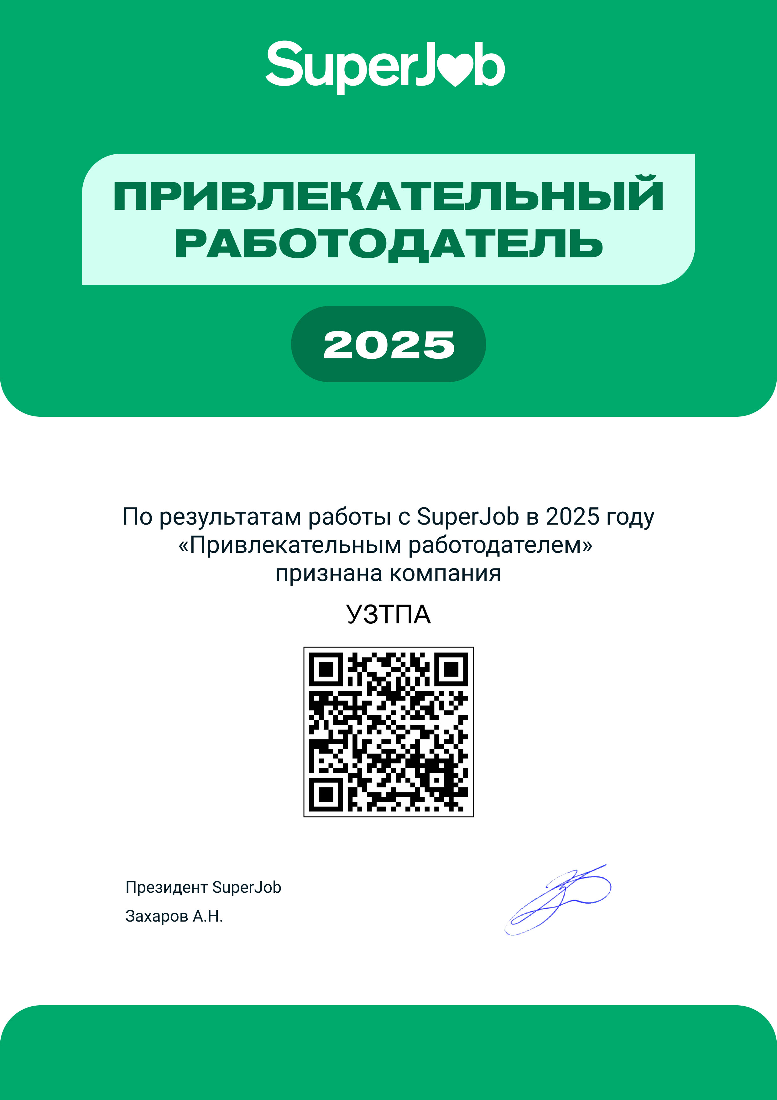 Статус подтверждает высокую репутацию предприятия, доверие профессионального сообщества и стабильные позиции УЗТПА на рынке труда.